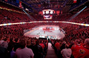 It’s a sea of red here for each game. Just about every fan wears a Flames jersey to the game, which is something you don’t see at every stadium.