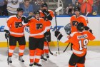 About a minute after Brunette found the back of the net, Jamie Langenbrunner beat Ray Emery on a slapshot from just above the left circle. Talk about a momentum killer… Then, a few minutes later, Andy McDonald scored with a wicked wristshot from about 15 feet in front of Emery. This goal was all set up by beautiful passes from Patrik Berglund and David Perron. With about 4 minutes left in the first period, Patrik Berglund added the Blues third goal after redirecting a shot from Barret Jackman. The two teams headed into the intermission with the Blues leading 3-1.