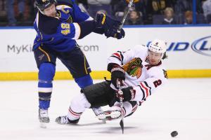There were a lot of positive signs in tonight’s win by the Hawks. First, they out-shot St. Louis 46-24. That is pure domination. Second, they tied the Blues with 29 hits in the game. If you have watched the Hawks on a frequent basis this year, then you know that they have not been a physical team up to this point in the season. Also, Jamal Mayers and Brandon Bollig got into a couple big fights that helped give the Blackhawks energy boosts. I specifically liked Brandon Bollig going right after Ryan Reaves after Reaves put a major hit on Jamal Mayers. Bollig was given a 2 minute instigator penalty (I don’t like this rule), but the Hawks were able to kill that off.