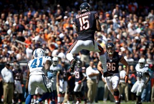 It was pretty much a forgone conclusion that the Bears would walk away with a victory against the Colts this past Sunday, and they did by a final score of 41-21. Although the first 2 offensive series’ were dreadful for the Bears, they ended up turning things around and put on a great offensive performance. The reunited tandem of Jay Cutler and Brandon Marshall put on a show and lived up to the hype as Cutler finished with 333 yards and two touchdowns, one of which was to Marshall. Marshall ended the game with 9 receptions for 119 yards and one TD.  Another pleasant sight for us Bears fans was Matt Forte looking 100%, and Alshon Jeffery coming up with 80 receiving yards and a touchdown.